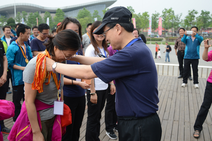 9點(diǎn)30分,健步走活動(dòng)開(kāi)始。40多分鐘后,60多名黨員干部一個(gè)不拉地走過(guò)終點(diǎn)。王耀等部領(lǐng)導(dǎo)分別給獲得男女前10名的同志頒獎(jiǎng)。