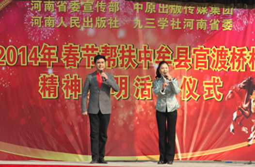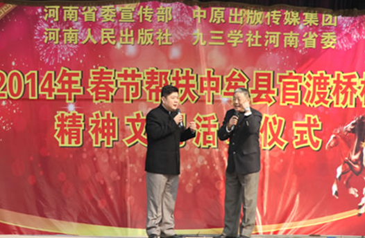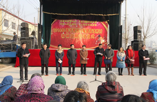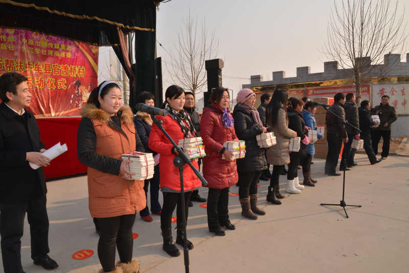 為促進(jìn)農(nóng)村精神文明建設(shè)和城鄉(xiāng)一體化發(fā)展,更好更快地提升公民文明素質(zhì)和社會(huì)文明程度, 2014年1月23日,省委宣傳部牽頭中原出版?zhèn)髅郊瘓F(tuán)、河南人民出版社、省九三學(xué)社等省直單位,冒著冬日嚴(yán)寒來(lái)到了中牟縣官渡鎮(zhèn)官渡橋村,開(kāi)展幫扶慰問(wèn)活動(dòng),把溫暖和愛(ài)心送給農(nóng)民群眾。省委宣傳部機(jī)關(guān)干部十多人參加了慰問(wèn)活動(dòng)。