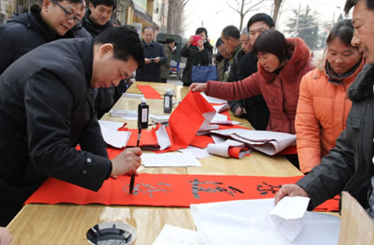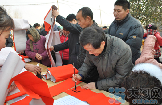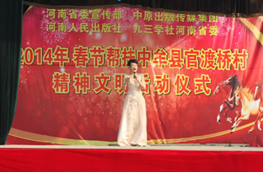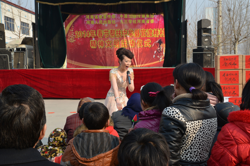 省委宣傳部副巡視員杜瑞明代表省直四家單位講了話,向官渡橋村村民送上節(jié)日的祝福。隨后,慰問(wèn)團(tuán)的領(lǐng)導(dǎo)向官渡橋村農(nóng)民群眾和小學(xué)生贈(zèng)送了文體用品。由省委宣傳部邀請(qǐng)的薛青、郝曉冬等省內(nèi)多位知名演員為村民們表演了歌舞《田野里的春天》、豫劇《朝陽(yáng)溝》選段、相聲《大腕研究》、嗩吶《百鳥(niǎo)朝鳳》等七個(gè)精彩的節(jié)目。在近兩個(gè)小時(shí)的演出中,臺(tái)上演員們精彩的表演,博得群眾的陣陣掌聲。省委宣傳部機(jī)關(guān)黨委專職副書(shū)記李憲林、創(chuàng)建處處長(zhǎng)張德偉揮毫潑墨,現(xiàn)場(chǎng)為鄉(xiāng)親們義寫春聯(lián)。省九三學(xué)社邀請(qǐng)的省醫(yī)療專家為鄉(xiāng)親們傳播健康衛(wèi)生知識(shí),現(xiàn)場(chǎng)檢查治療。中原出版集團(tuán)和河南人民出版社為鄉(xiāng)親們贈(zèng)送了科技圖書(shū)讓大家過(guò)春節(jié)時(shí)學(xué)習(xí),整個(gè)慰問(wèn)活動(dòng)場(chǎng)面熱烈,氛圍濃厚。