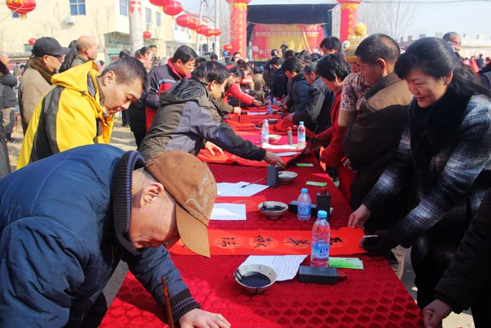昔日古戰(zhàn)場,今朝更吉祥。2015年2月6日上午,由省委宣傳部和省文聯(lián)、省政府金融辦主辦,鄭州市委宣傳部、河南省文藝家志愿者協(xié)會、河南省省直書畫家協(xié)會協(xié)辦的全省“踐行價值觀 新年送春聯(lián)”活動啟動儀式,在中牟縣官渡鎮(zhèn)官渡橋村舉行。省委宣傳部常務(wù)副副長王耀同志在啟動儀式上講話,副部長王慶同志主持了儀式。省金融辦副主任李栓成、鄭州市委常委、宣傳部長王哲等也參加了活動儀式。