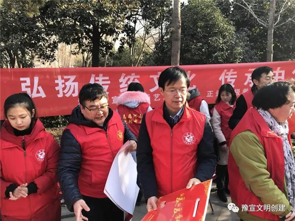 臘月二十三(2月8日),是我國北方民間俗稱的“小年”?!岸?,糖瓜粘”,在群眾心里,“小年”是春節(jié)的序曲。今天上午,為了營造歡樂喜慶、文明祥和、溫馨和諧的節(jié)日氛圍,省委宣傳部黨員志愿服務(wù)隊聯(lián)合多家志愿服務(wù)團(tuán)隊開展“志愿河南出彩中原——2018向幸福出發(fā)”送福送春聯(lián)志愿服務(wù)活動。